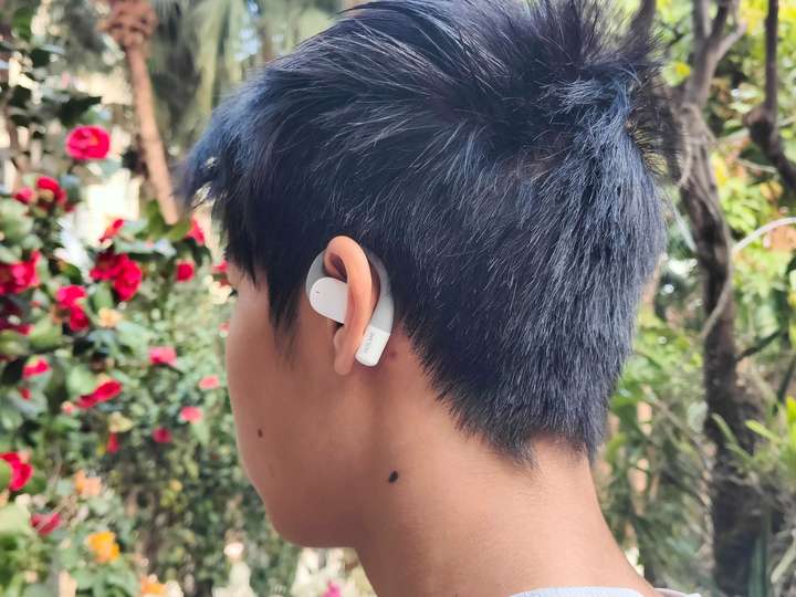 Ultra的挂耳设计里,挂钩设置成顺着耳廓曲线走的流线型弧度,拿到手里第一感觉就是轻,单耳才 8 克,比我之前用的那款挂耳耳机轻了不少。