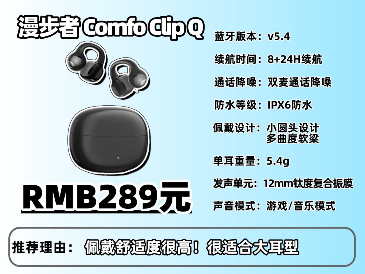 推荐理由:百元价位性价比最高的耳夹式耳机!