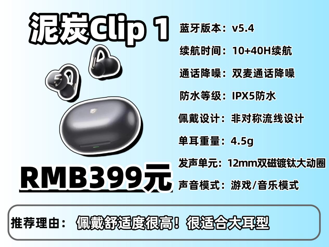 推荐理由:500元以内耳夹耳机音质表现TOP级选手,高性价比不二之选!