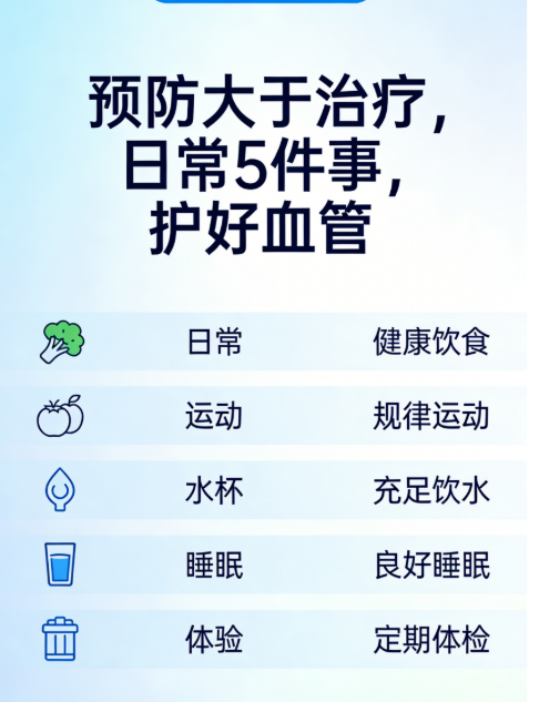 今天想跟大家分享5个超实用的日常预防方法,对上面这几种病都管用!它们简单、好上手、容易坚持,不烧钱也不费时间,不管年轻人还是中老年朋友,都能轻松做到。比如合理膳食、适量运动、戒烟限酒、定期体检、保持好心态——每一点细水长流的坚持,都是在为自己的健康“存钱”。希望大家看完真的能动起来,从小习惯开始改变,远离心血管疾病的困扰哦~