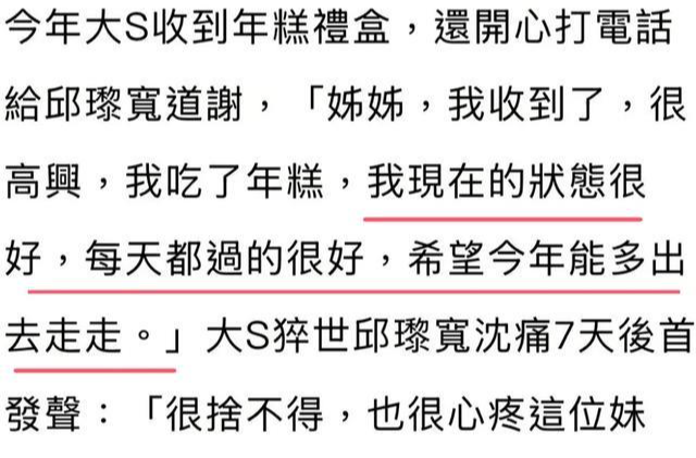 就在2024年年尾,大S还和好友说状态很好,每天都过得很好,希望2025年能多出去走走。