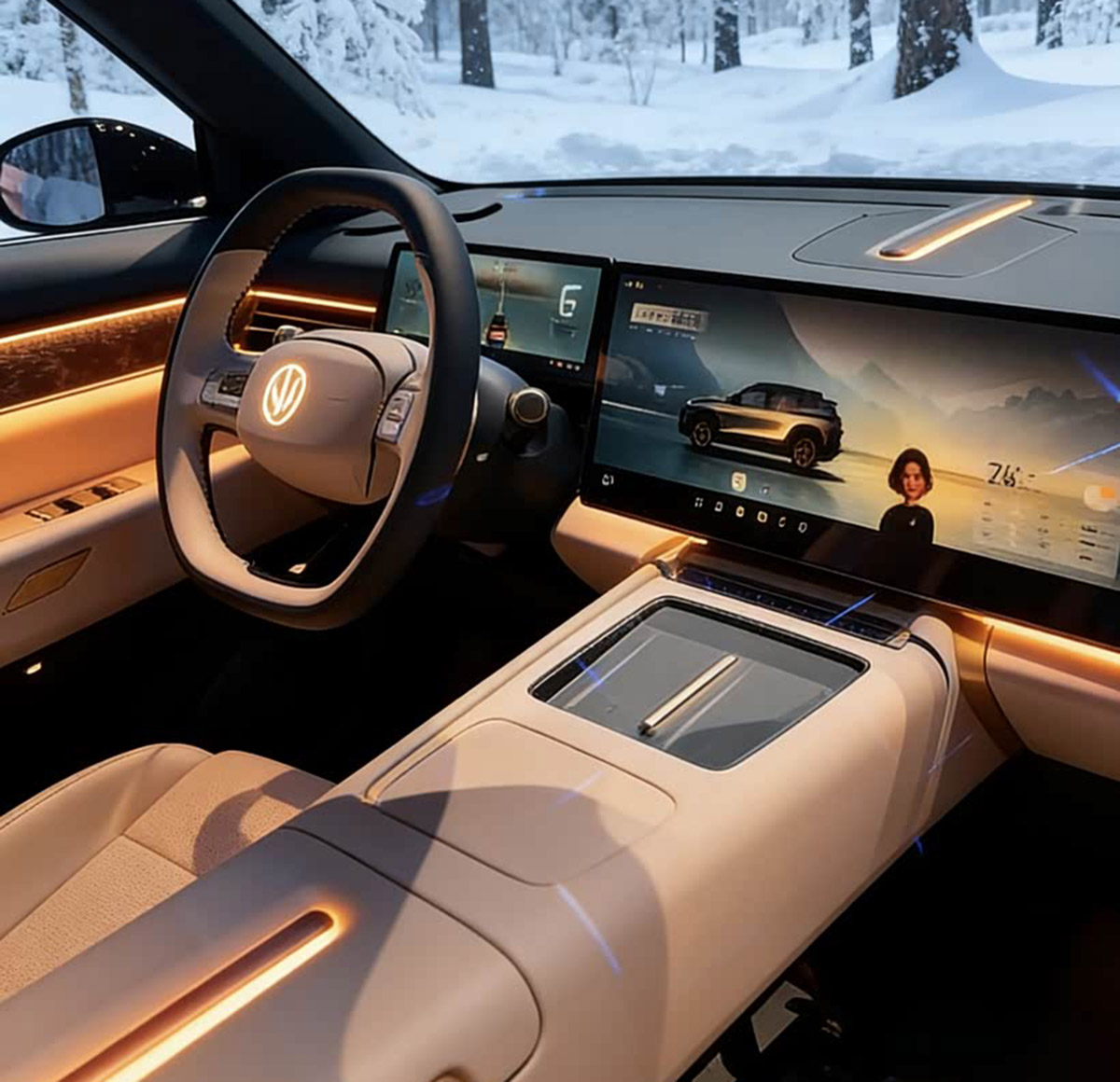从此前曝光的内饰效果图来看,中控台是简约立体设计布局,除了一块单独的液晶仪表盘,还会提供一块大双联屏。