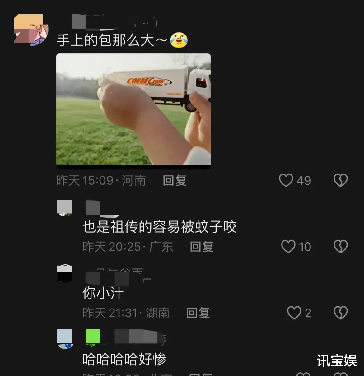 网友调侃:也是祖传的容易被蚊子咬。