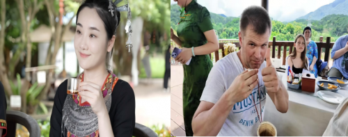 夕阳西下, 五指山腹地的初生古寨茶园迎来又一批体验茶文化的国际游客。黎族老人用传统方法烘烤茶叶, 茶香与雨林的草木气息交织, 飘向远方。
