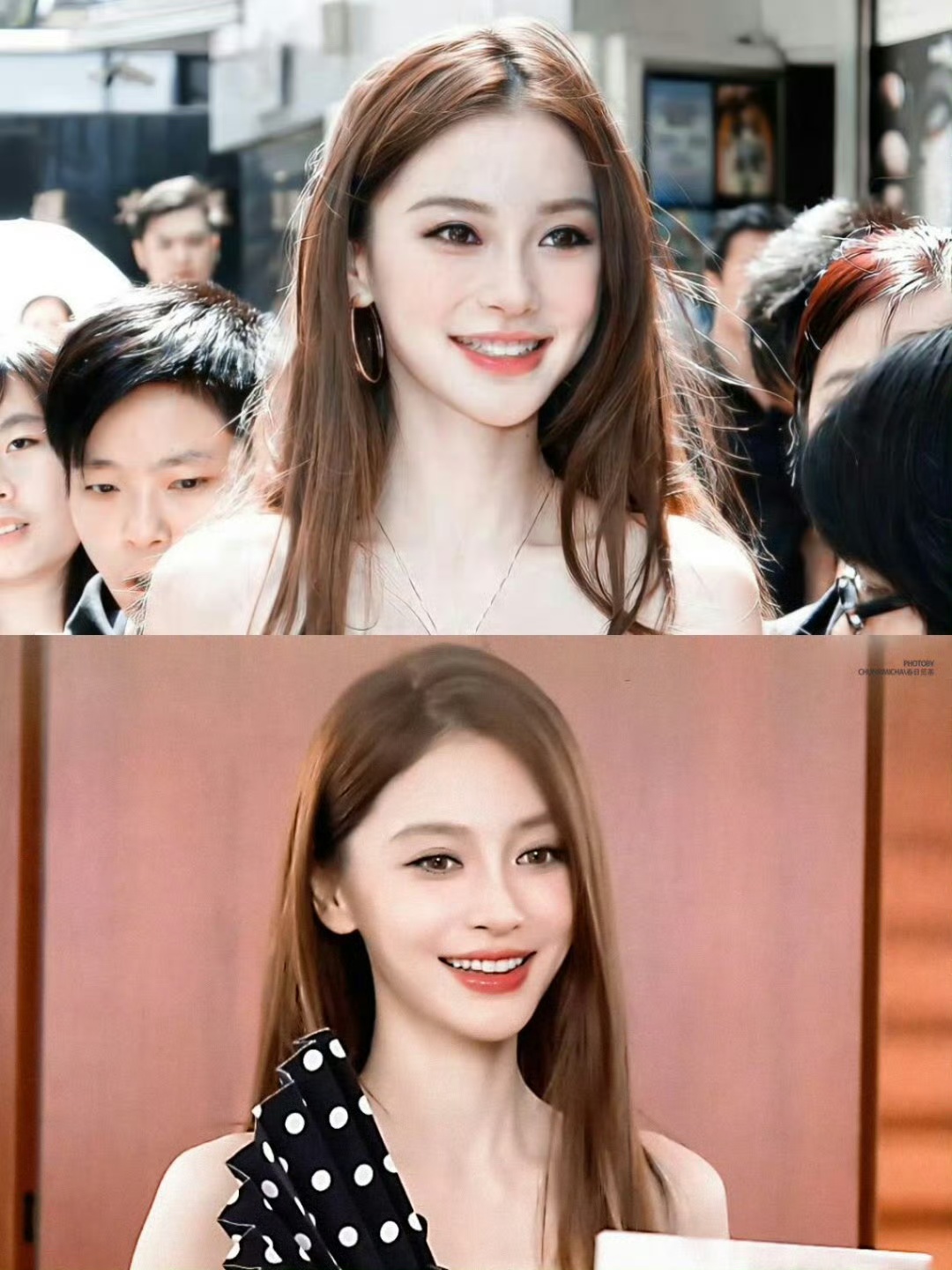 比华服更摄人心魄的,是那张仿佛被时光遗忘的脸庞。冷调烟熏妆精准地晕染在眼尾与睫毛根部,全包眼线勾勒出深邃的眼窝,与高挺的鼻梁、清晰的“双C线”眉骨共同构成了教科书级别的“混血骨相”。这种妆容曾是千禧年代审美启蒙的图腾,如今在她脸上被完美复刻,却毫无复古的陈旧感,反而透出一种超越时间的现代性。当一头垂坠感十足的黑色长直发贴合着肩颈线条滑落,露额设计凸显出优越的头包脸比例,网友口中“洋娃娃既视感”的赞誉便不再只是夸张,而是对这种近乎苛刻的完美骨相的直观惊叹。