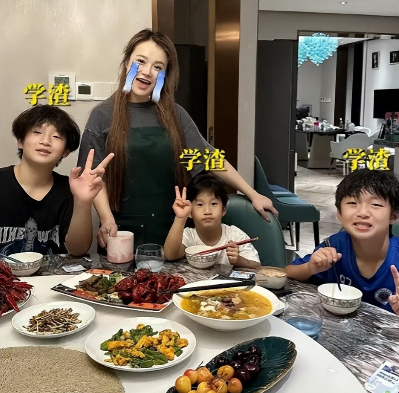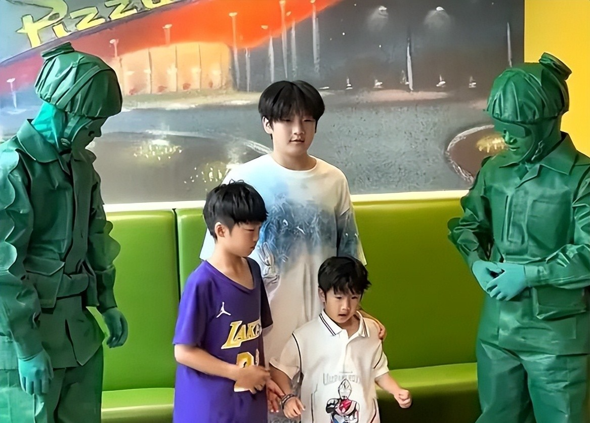 俩人有三个儿子,个个活泼可爱,但是这身高就有点不同了。
