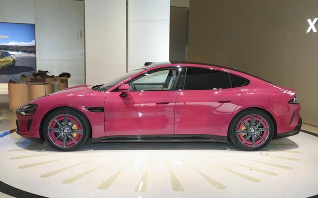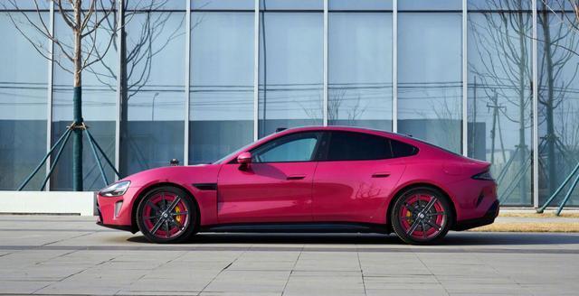 话说从侧面去看那小米SU7,它的车顶线条就那么顺顺溜溜地一路延伸到底,中间压根儿就没有什么拐点出现,看上去可真是流畅极了呢。再瞧瞧那车辆的腰线,简洁又凝练,而后翼子板呢,还微微地隆起来了,就连窗线都有着往上扬起的态势,就这么一下子,那种运动的气息就给彰显出来啦。说到细节这块儿,小米SU7在A柱的下方可是设置了纵向的通风孔哦。就从这个通风孔这儿,引出了往内收的车门线条呢。车门把手呢,是采用的半隐藏式设计,看上去还挺特别的。还有那专属的米型璀璨洋红轮毂,显示效果那叫一个出色,特别亮眼呢。再看看车尾,配备了贯穿式的尾灯,在上方还翘起了鸭尾式的尾翼呢,而且哦,还能选装主动升降式尾翼哟,感觉更带感啦。