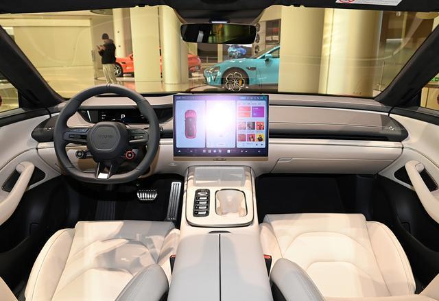 话说当人进入车内,就会发现小米SU7璀璨洋红这款车呢,它采用的是全新的米灰色内饰哦。这新内饰一瞅上去,就给人一种特别柔和又温馨的感觉呢。再瞧瞧这车内的内饰布局,和之前可没什么不一样的地方哦,还是原来那样。不过呢,它配备的各种屏幕可真是够亮眼的。有那16.1英寸的中控屏呢,分辨率达到了3K,还是悬浮式的,看着就很有科技感;还有7.1英寸的仪表屏,是翻转式的哦;更厉害的是那56英寸的HUD抬头显示,开车的时候瞅着可方便啦。再看那多功能方向盘,是平底构型的呢,整个都用黑色皮质给包裹得严严实实的,摸起来手感肯定很不错哦。而且,中央通道那儿还设置了一排拨动式的物理按键呢,这么一来,整个车的档次感一下子就又提升了不少呢。