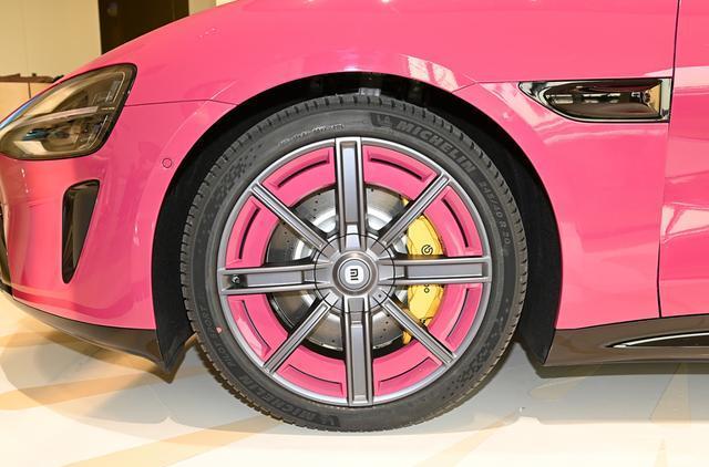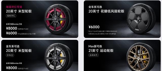 就在那个时候,小米SU7的小米15周年限定系列也跟着一同推出啦。这个限定系列里可有不少新玩意儿呢,包含了4款全新的轮毂,还有1款崭新的内饰哦。特别要说的是其中那款璀璨洋红的车漆,它可有专属的20英寸米型轮辋呢。你瞧啊,那“米”字形的辐条是熏黑的样式,再和璀璨洋红的配色搭配在一起,最后又配上了Brembo的黄色卡钳,这么一组合,整个看起来就显得更加特别啦,特别得让人一眼就能注意到呢。