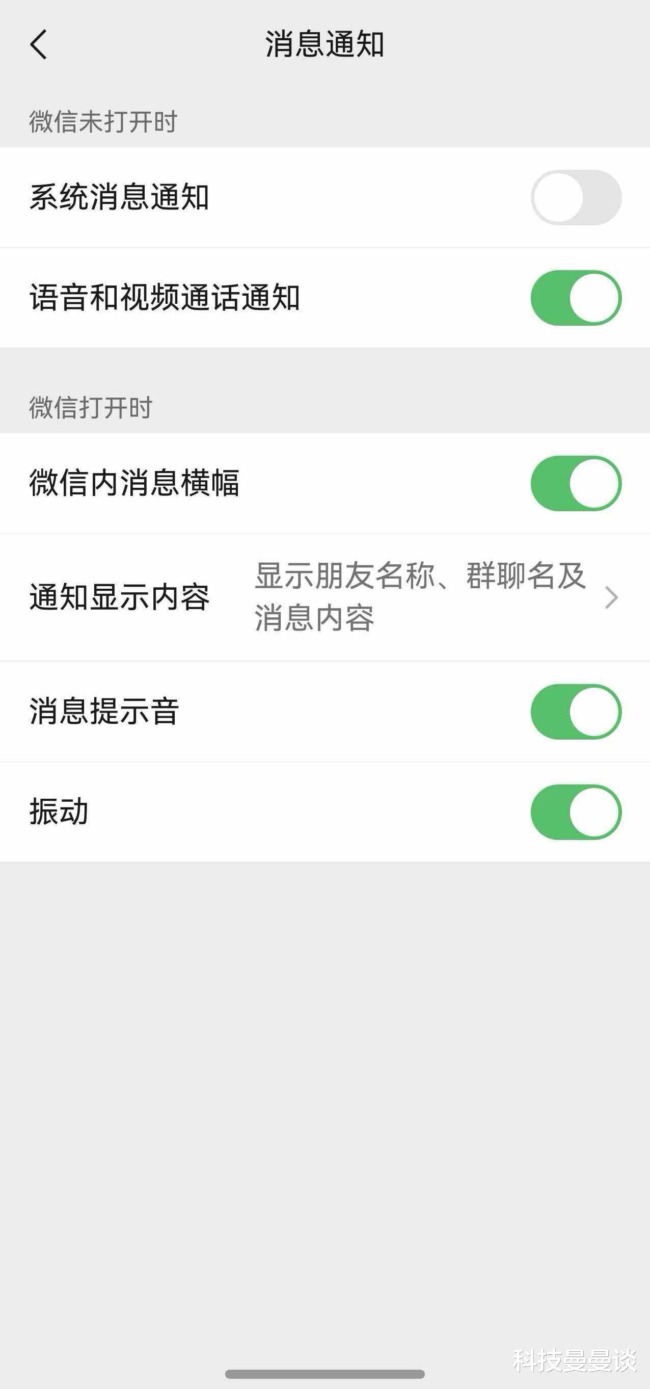 另一个实用的改进是:在“设置-消息通知”中的“接收新消息通知”和“语音和视频通话通知”变成了两个独立的开关。这意味着我可以按消息类型更精细的管控,精确区分普通消息与重要通话的提醒模式。比如周末我想清净些,我就可以关掉系统消息通知,但重要的家人朋友还是能通过语音电话找到我。如果你在日常使用时遇到过收不到消息提醒的问题,可以去设置-消息通知里检查一下。