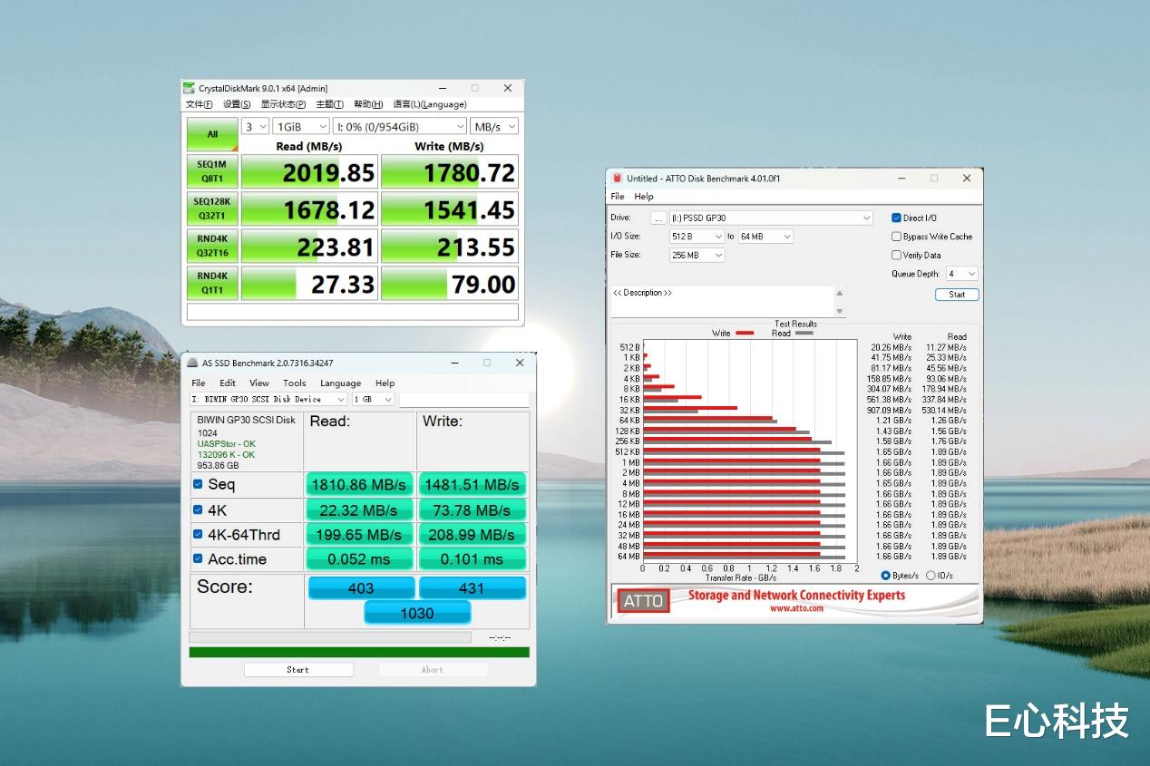 接下来进入常规性能测试环节。为还原真实使用场景,我们选用一台服役多年的 DIY 整机作为测试平台,其前置接口支持 USB 3.2 Gen2x2 规格。经 CrystalDiskMark、ATTO、AS SSD BenchMark 等多款专业测速软件实测,这款移动固态硬盘的性能表现基本达到官方标称标准值。