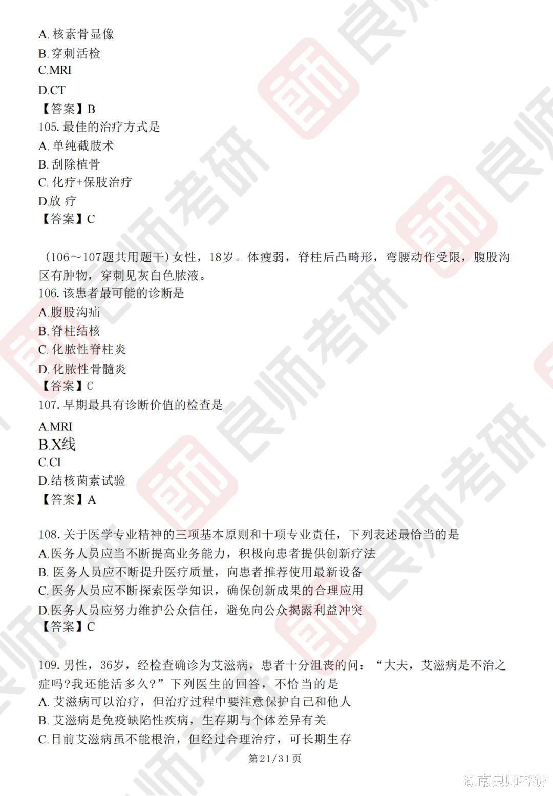继续关注到26考研真题卷——西医综合306。西医综合306考试主要涉及基础医学和临床医学两大类专业。基础医学专业:包括人