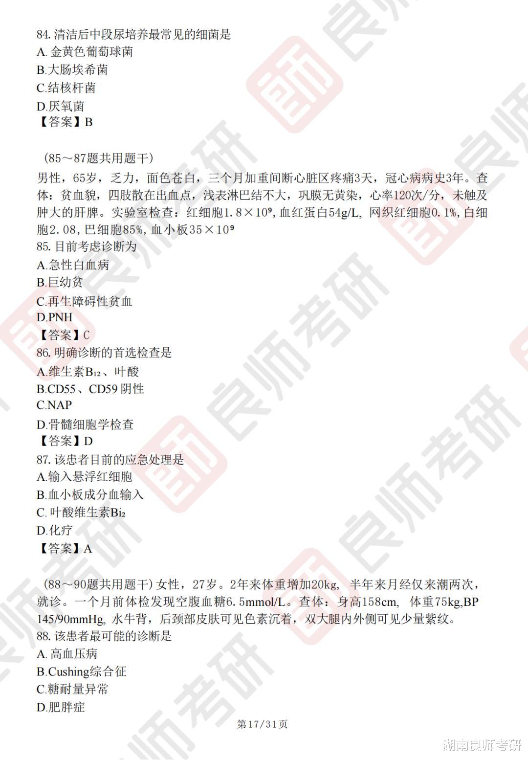 1. 考查范围涵盖6大学科,包括生理学、生物化学、病理学、诊断学、内科学和外科学;2. 考试题型分为三类,分别为A型选择题(1-90题)、B型选择题(91-120题)和X型多选题(121-150题),总分值为300分。