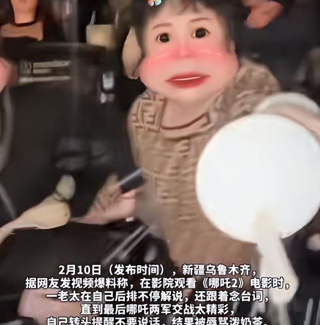 信息来源:@后浪视频·1天前:#老太看哪吒不停说话女子提醒被泼奶茶 2月9日,新疆乌鲁木齐。女子发视频吐槽在影院看《哪吒2》,遇后排老太不停地解说电影,还跟着念台词,自己转身提醒后反遭辱骂泼奶茶。