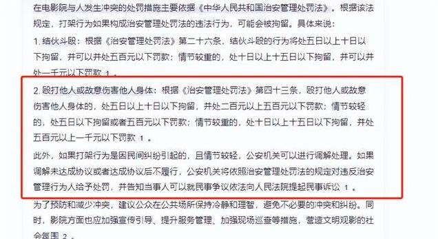 实际上,大妈这样在电影院打扰别人观影体验,并且动手与人发生冲突的行为,已经违反了我国的治安管理法。