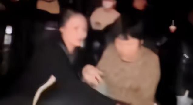 一旁黑色衣服的女子连忙拉着大妈,生怕大妈继续做出什么出格的举动,可没想到的是大妈直接站在椅子上无差别的挥洒着奶茶,一整杯奶茶流的哪都是,洒在无辜观众的身上。