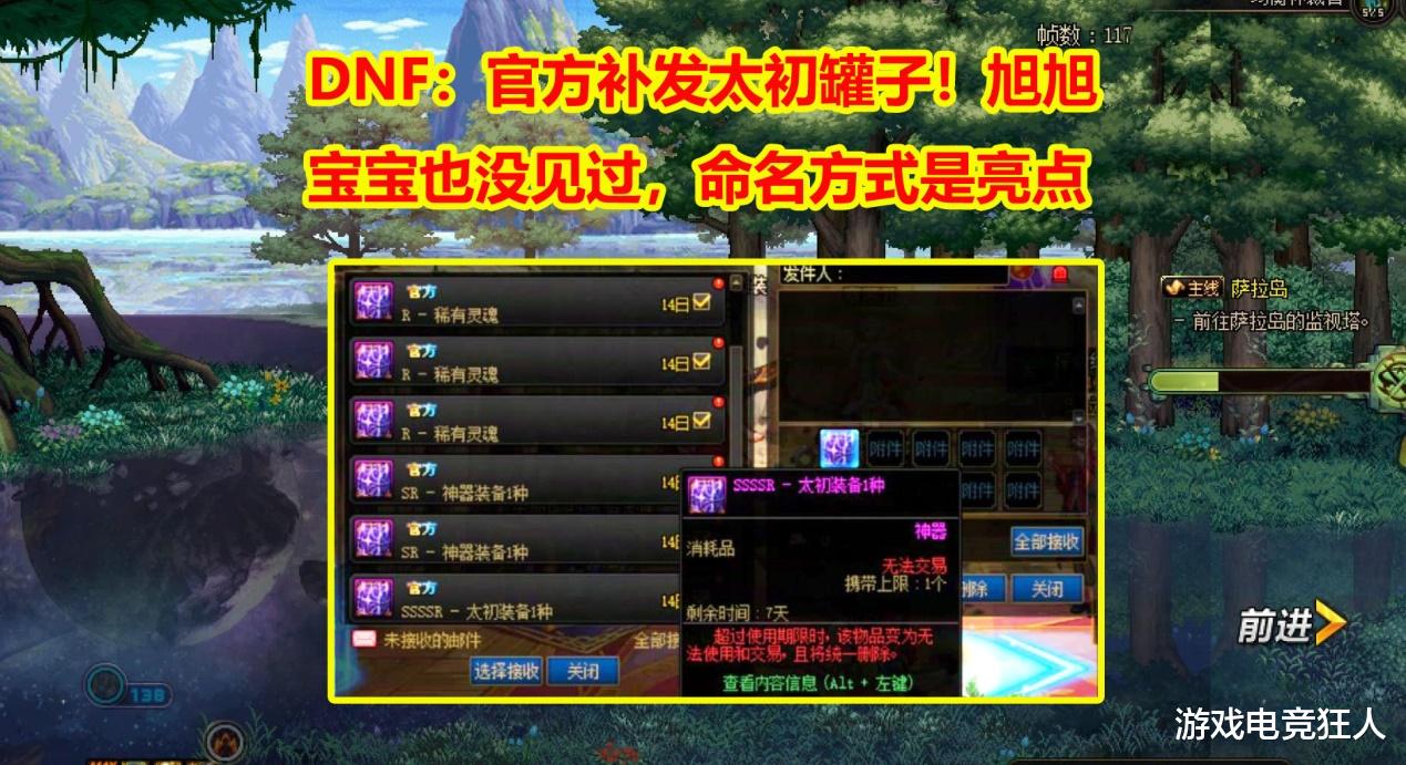 你知道吗有玩家收到了官方补发的罐子:名字是从R、SR一直到SSSSR装备太初随机罐子。这位玩家是如何拿到的?
