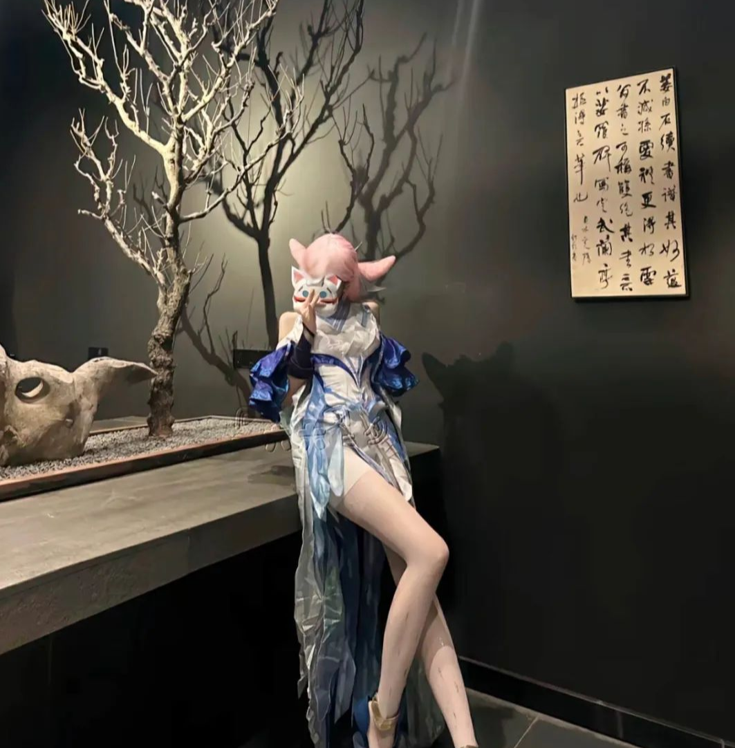 而这位博主cos的貂蝉,在还原度方面还是非常优秀的,博主身穿长裙,脸上带着猫影面具,一头粉色的头发,整体造型和游戏中的猫影幻舞基本上一样,还原度可以说是相当的高了。