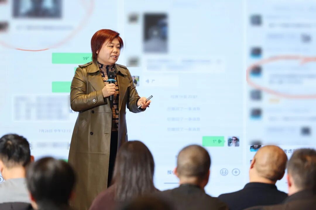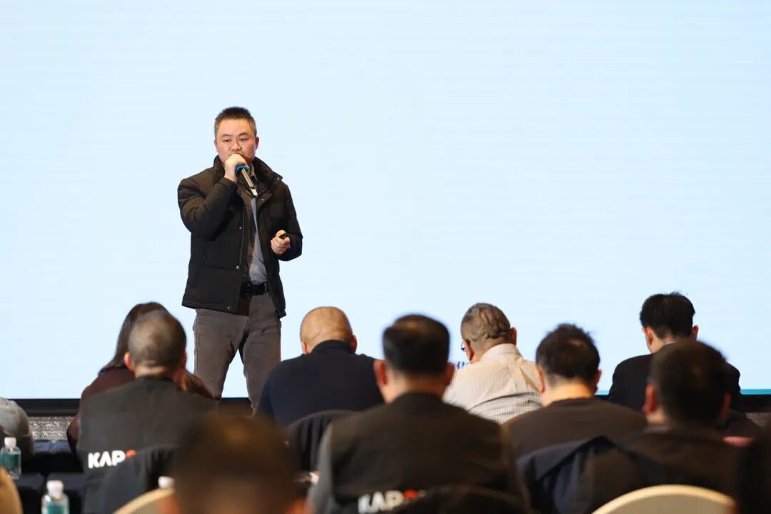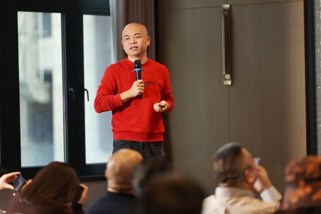随后,泉州红棉花运营中心负责人陈总带来了极具价值的分享。他结合自身多年的一线经验,精辟解析了红棉花板材在环保等级、基材品质、饰面工艺、花色设计及配套服务等方面与市面上普通板材的显著差异,将产品的核心价值点剖析得淋漓尽致。不仅如此,他还无私分享了如何利用这些差异化优势,通过价值塑造、场景化展示与一体化解决方案,有效提升客单值的实战技巧,为在场伙伴提供了直接可用的业绩提升工具箱。