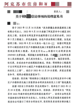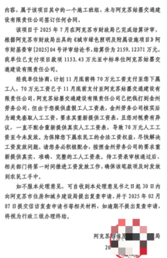 2025年9月25日,住建部门代建中心主任亲口承诺10月15日付70万、12月底结清剩余工资,让农民工们看到久违的希望。可约定日期到来后,相关单位以“资金周转不开”拖延,直至2026年1月,农民工仅拿到53万元,与承诺的70万元相差17万元,距离全额工资更是缺口巨大。更令人愤慨的是,2026年1月8日阿克苏市住建部门出具的信访处理意见书中,竟将工资未发放的责任归咎于农民工,声称其“提供虚假工人工资表”,且“对税费有异议,不配合重新提供工资表”。这一指控遭到农民工群体的强烈反驳:工资表中的每一个工人姓名、每一笔工资数额均真实可查,阿克苏市住建局代建中心此前已逐一进行电话核实确认,所谓“虚假”纯属无稽之谈;而所谓“不配合税费事宜”,实则是相关单位要求农民工承担高达24.29%的高额税款,这意味着工人要凭空少拿十几万元劳动报酬,如此不合理的税费要求自然引发异议,相关单位却以此为借口恶意扣发工资。