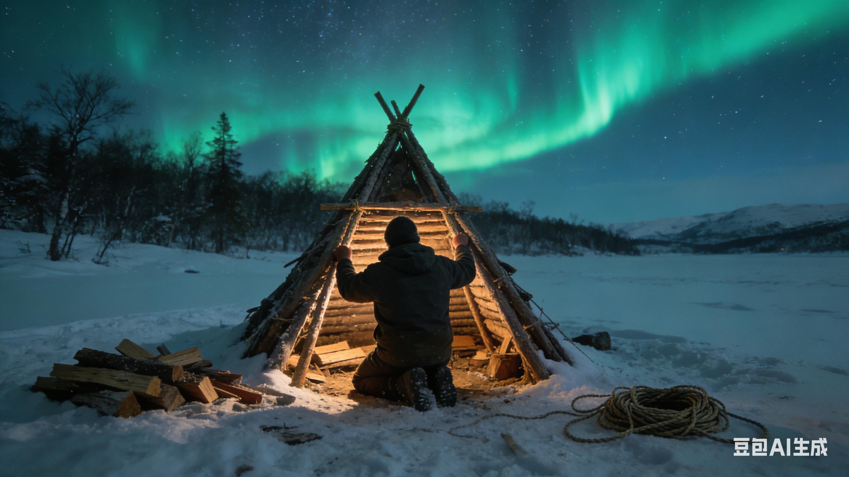他挖过冬眠的巨型鳄龟,钓过白斑狗鱼,躲过狼的袭击,还在极光照耀的雪地里搭建庇护所,靠着自制的鱼汤和捕猎的雪靴兔维持生计。