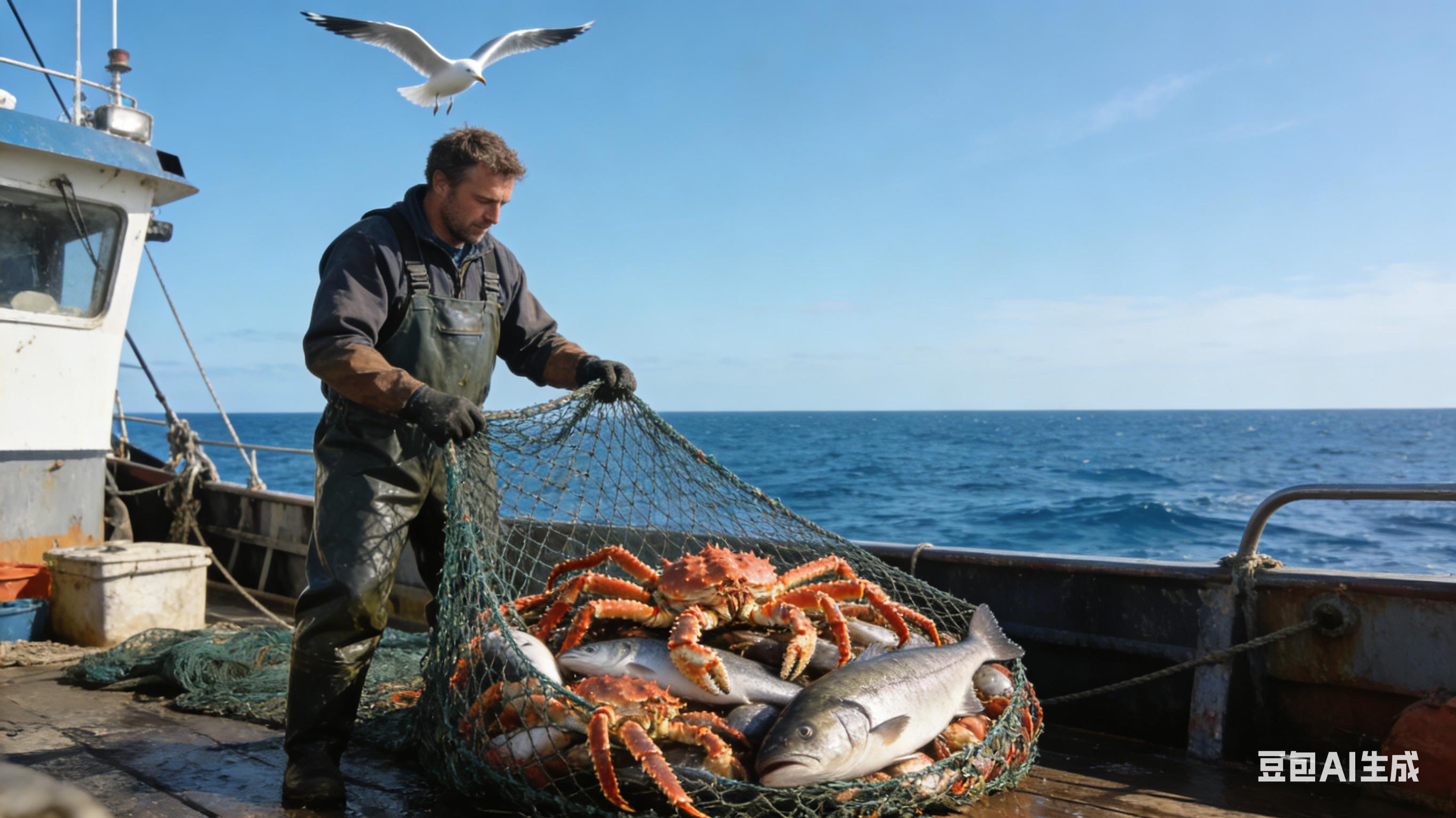 渔场里更是收获满满,成群的帝王蟹、凶猛的金枪鱼和肥美的真鳕鱼成了常态,捕蟹季遇到蟹潮时,一网下去就是数不尽的收获。