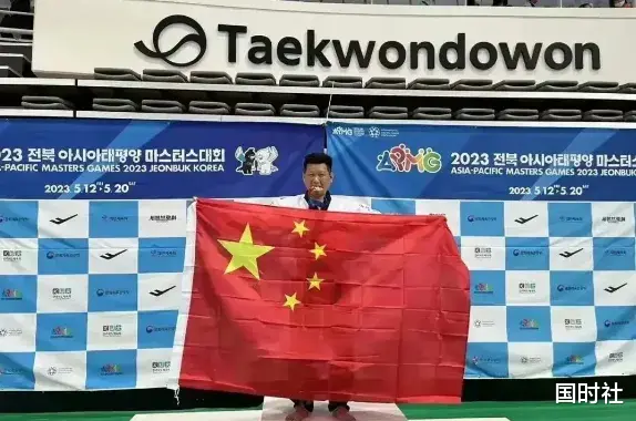在之前韩国举办的亚太大师运动会上,来自中国台湾的选手李东宪,手持五星红旗登上领奖台!