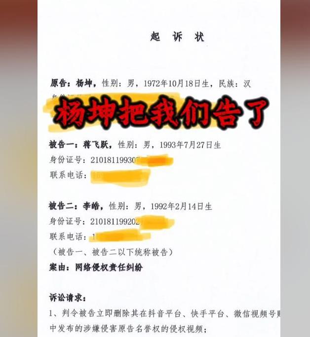 3月10日,四川芬达兄弟二人摒弃以往作风,径直提交了一份起诉状,其中载明原告为杨坤。原以为此视频延续其一贯搞笑风格,但细听之下,两人言辞恳切,声称已被知名艺人杨坤老师提起诉讼,深感天塌地陷。