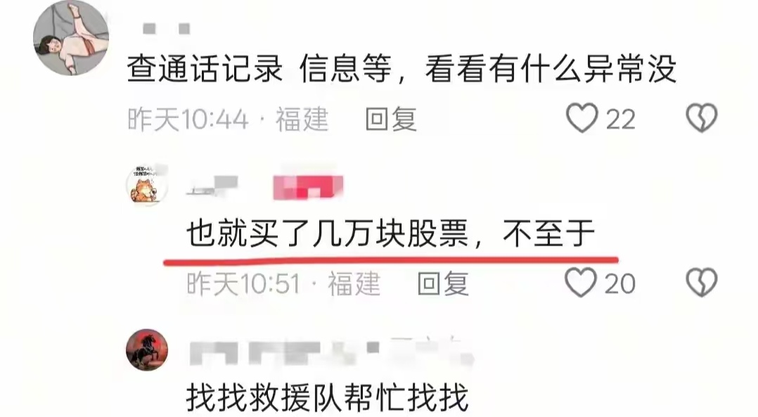 网友联系查看下张先生的通话记录和信息,看看有什么异常,张先生知道的也不多,就说哥哥买了一点股票,即使赔了也不至于这样。