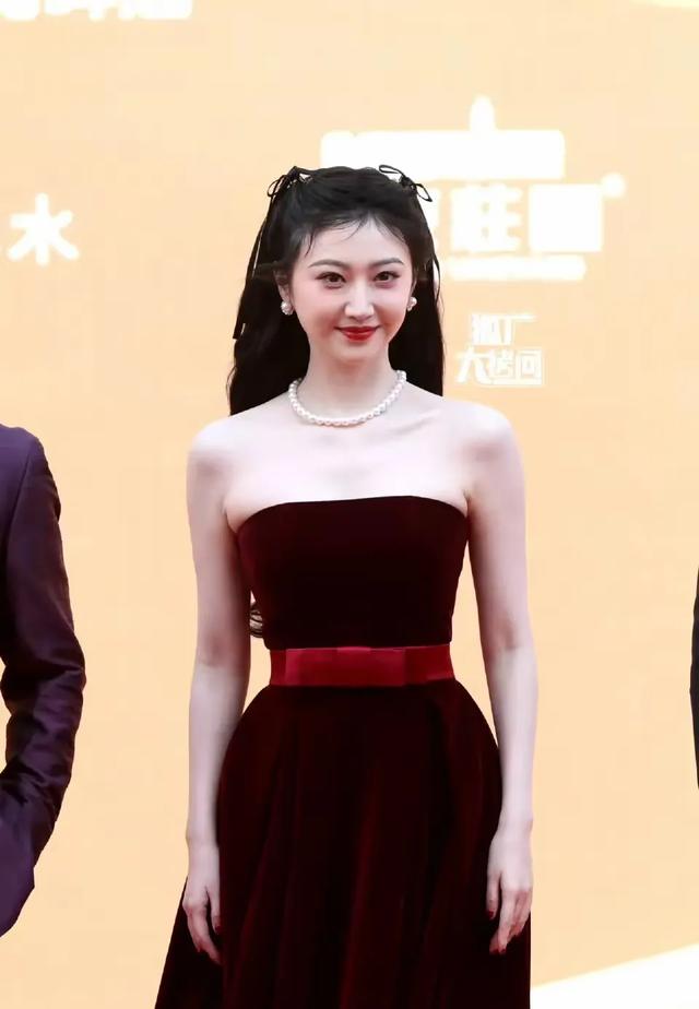 新生代较量中,关晓彤的直角肩与天鹅颈在闪光灯下白得发光,但过于紧绷的面部肌肉让甜美笑容略显僵硬。