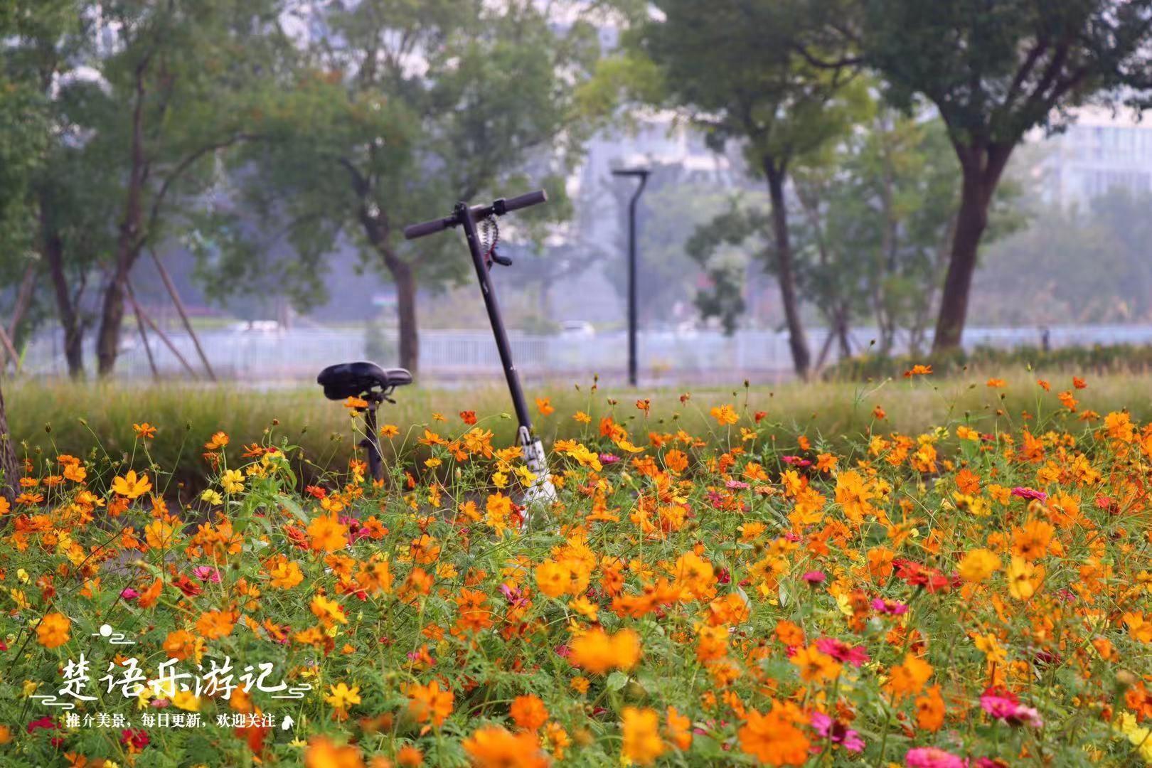它又分为4个区块,其中主区块在玉泉路9号桥、玉泉南路、湖景酒店和河道合围的区域。这片花海东西跨度仅100米左右,但南北跨度长达1000米以上,它以粉色和白色的秋英花海为主,远看一片粉红。