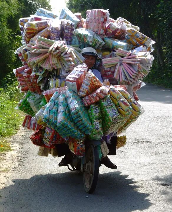 17.农村小卖部老板去城里进货回来,整个摩托像是一个大球一样,摩托被利用到极致了!