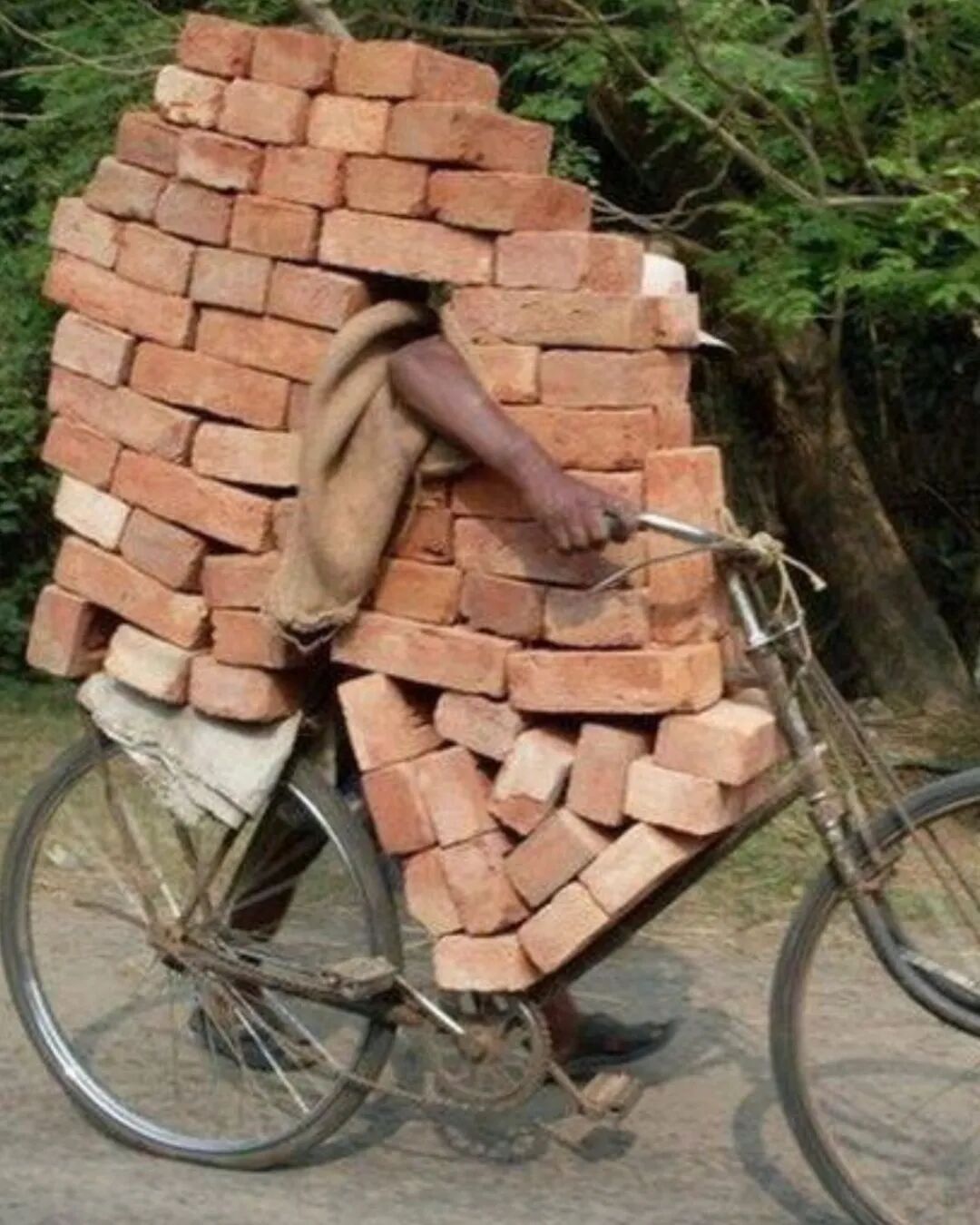 10.自行车拉砖头,只能感叹,这车的质量真好!