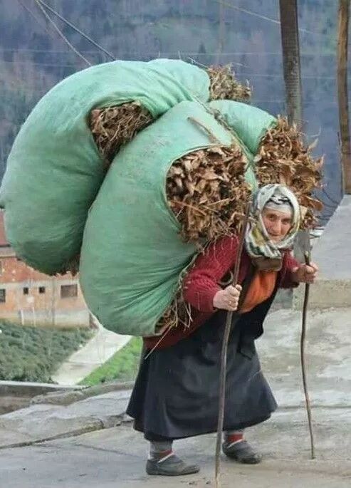 15.捡柴火回来的老妇人,腰都直不了了,有了这些柴火,这个冬天是暖和的!