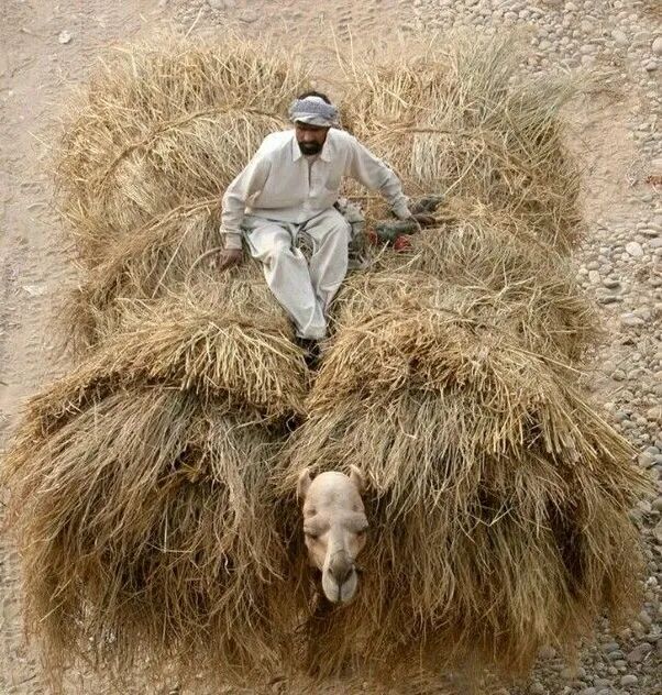 9.骆驼拉车,货物多到只能看到骆驼头,真是苦了它了,这可是血肉之躯啊!
