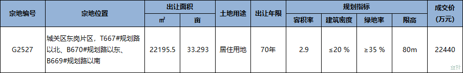 12月29日,兰州通驰房地产开发有限公司以22440万元,成功拿下了城关东岗片区面积约33.293亩居住用地。