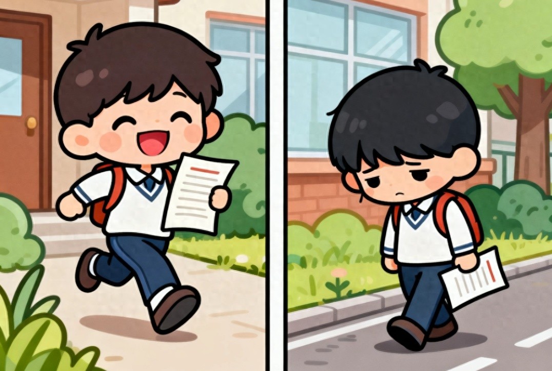 看到一幅画,我的妈呀,太真实了哈哈,我以为就我小时候这样,总会把成绩“写在脸上”,没想到……