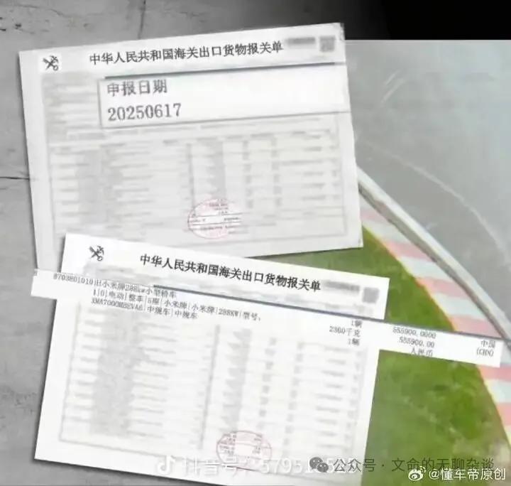 至于是不是小米的广告,懂车帝直接说不是,并把出口报关单拿了出来