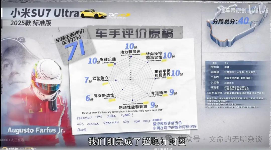 小米因为难以操控位列第二(视频里顶级车手开这车都费劲),看完我只有一个感慨:su7u还是卖太便宜了。