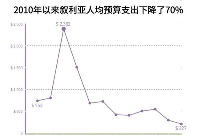 根据统计,叙利亚现在的人均GDP已跌至400美元以下。