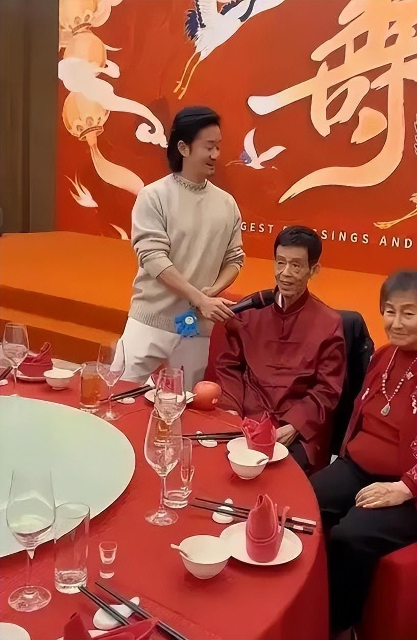 在父亲起身的时候,吴京也是扶着十分小心,这也能够体现出吴京对父亲的疼爱。