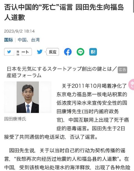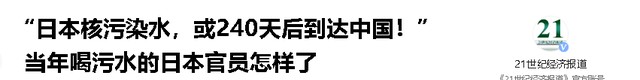 来源:世纪经济报道2023-08-24——“日本核污染水,或240天后到达中国!”当年喝污水的日本官员怎样了