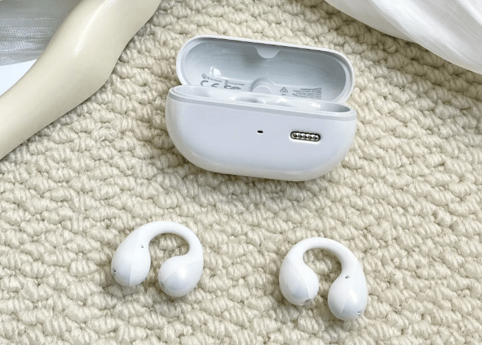 开放式耳机其实就是一种不塞进耳朵的耳机。它不会像入耳式那样把耳道堵住,而是挂在耳朵外面,把声音“送”到耳朵里,让耳朵保持自然的状态。