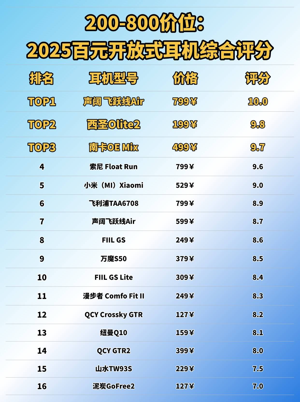 经过多轮实际佩戴和音质测试,我整理出了一份开放式耳机排行榜,给大家做个参考。选购时,建议不要只看广告或网红推荐,而是多关注专业测评的数据和体验。这样才能找到音质表现稳定、佩戴舒适、耐用度高的耳机。否则盲目跟风,很可能买到调音粗糙、漏音严重甚至佩戴不适的产品,影响日常使用体验。