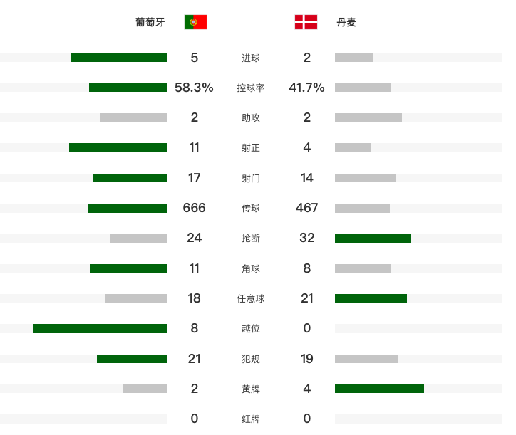 第115分钟,若塔助攻,贡萨洛-拉莫斯推射空门得手,葡萄牙总比分5-3丹麦。