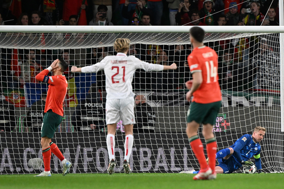 据统计,在代表葡萄牙出战的比赛中,这是C罗第9次罚丢点球(不含点球大战)。