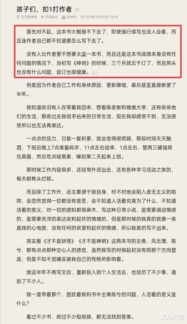 “山间全是松子”的马甲文《才不是神明》在停更半年后于今天确定太监了。