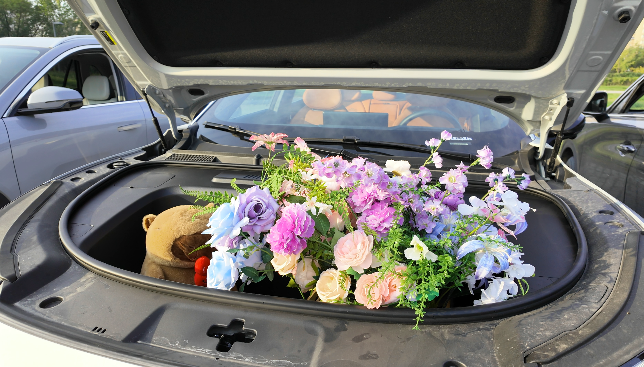 当你在超市门口被堵成这个样子的时候,那么只有这个大前备箱能够让你优雅从容的离开。