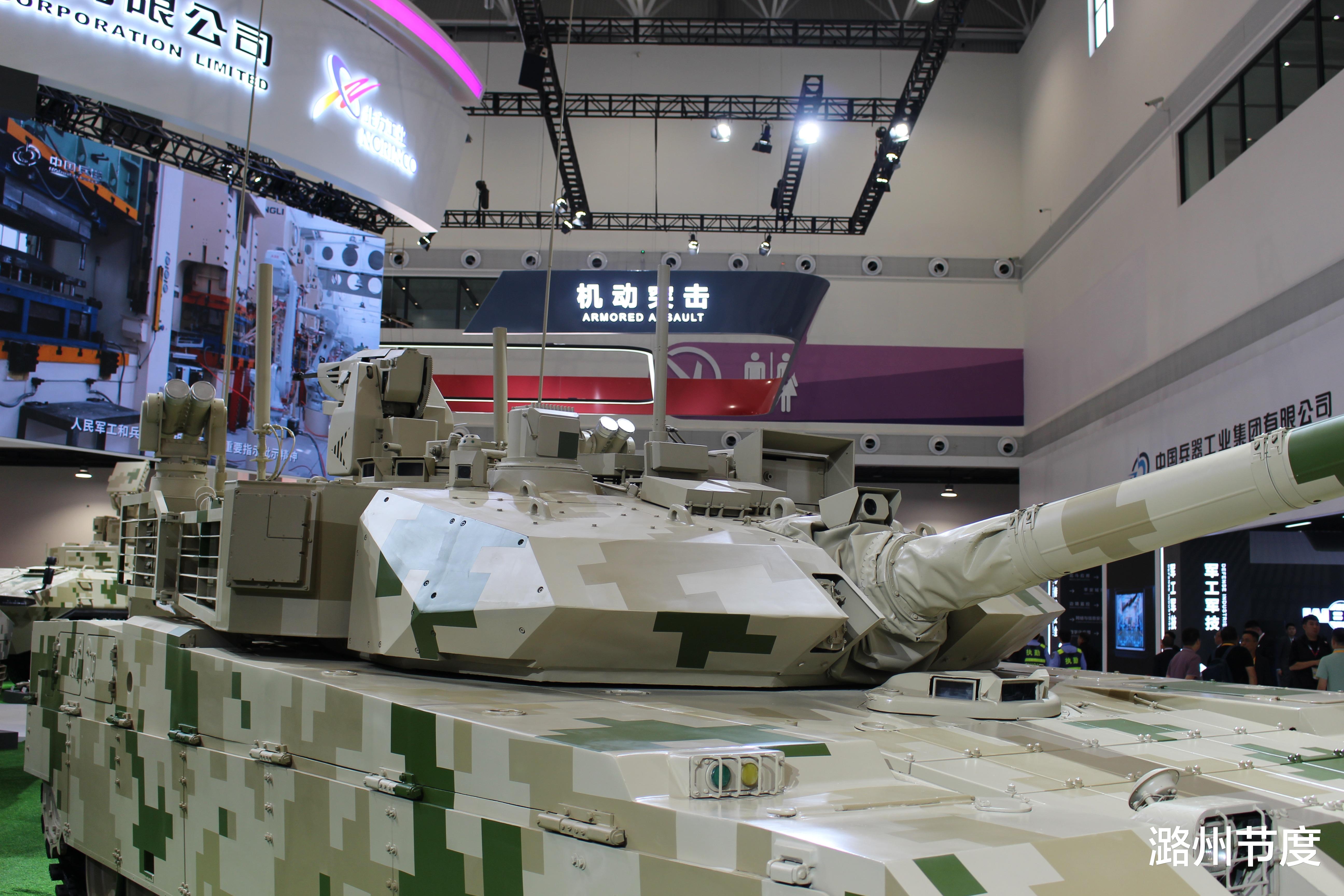 VT-4A主战坦克的炮塔,立着的三根杆就是干扰基站的天线,根据展台人员介绍,改无人机干扰战具备主动测频,主动干扰能力,保证频谱全覆盖全干扰,防止对方无人机跳频和改频谱,基本不需要人员操作,开机就行。但需要内部有独立电源供电,整体重量并不轻。