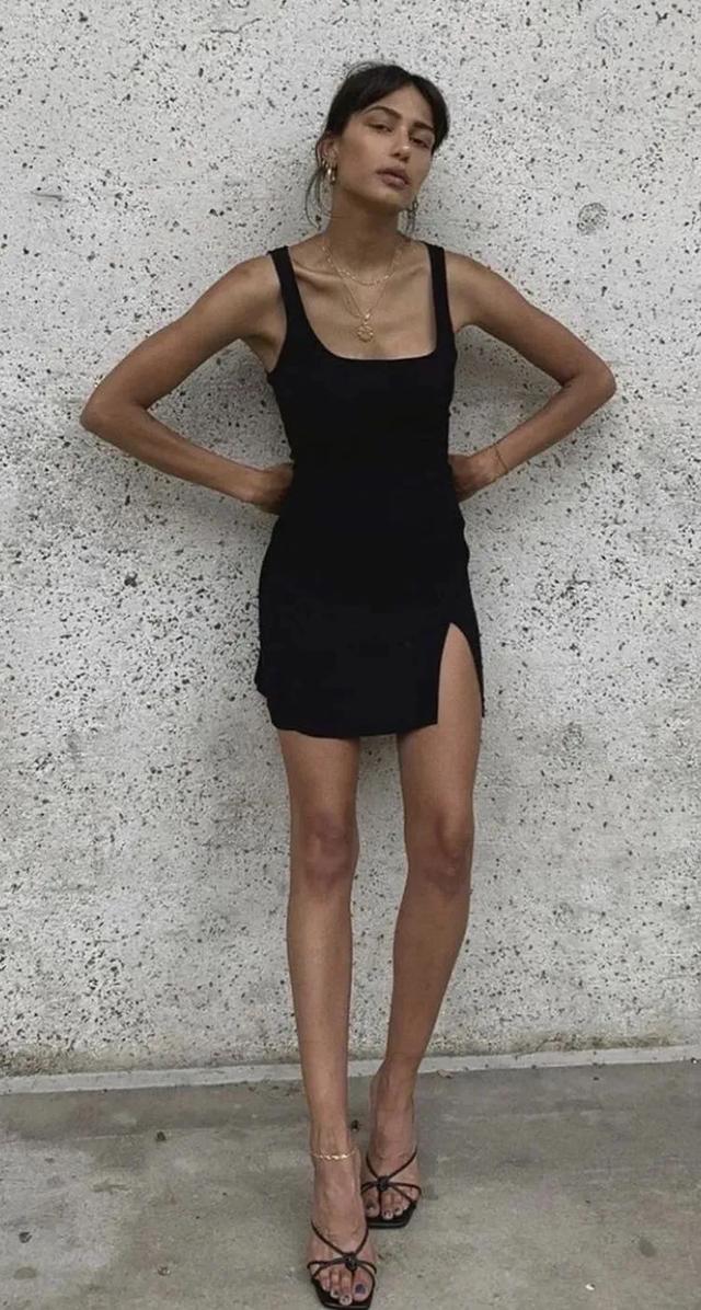 想在夏日清凉出街,可以选择露肤较多的背心短裙,尤其是带有小开叉的款式,搭配高跟凉鞋,轻松穿出大长腿。